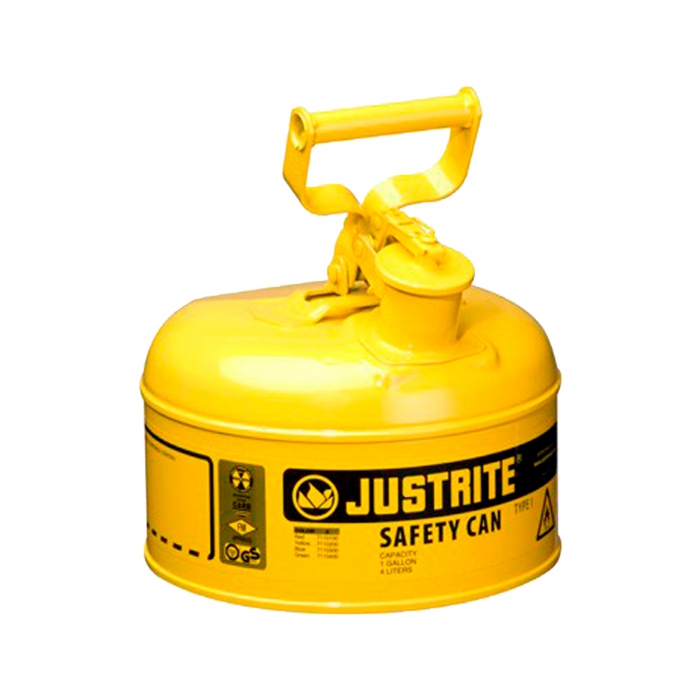 BIDON DE SEGURIDAD JUSTRITE TIPO 1 DE ACERO AMARILLO CAP 4 L C/MANGO DE OSCILANTE